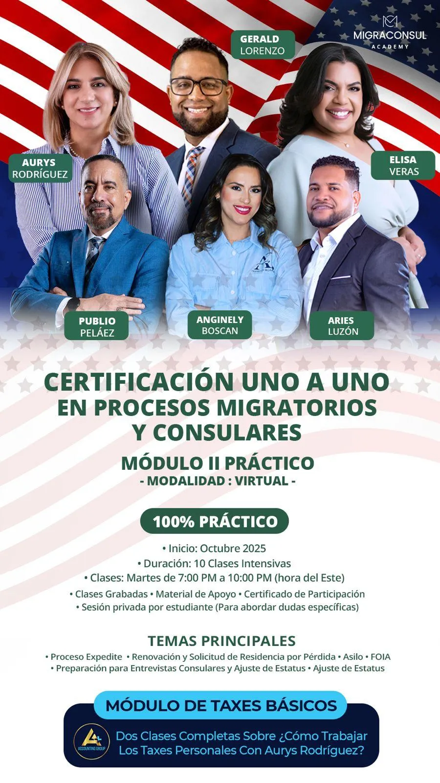 La Certificación UNO A UNO – MÓDULO II es un programa 100% práctico que te prepara para manejar casos migratorios con confianza y precisión. Aquí no solo aprendes, haces.